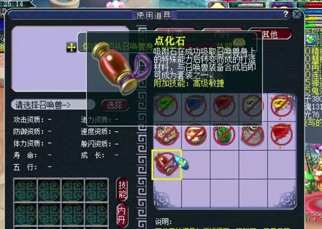 高驱鬼点化石对应的召唤兽首选三技能高防、高感、高驱鬼的天兵,其次是多技能,还有高夜高驱高感的大蝙蝠,再其次是单技能的古代瑞兽。高夜战点化石对应的召唤兽首选大蝙蝠,因为大蝙蝠的必带技能里就有高夜战,更容易被吸附,当然技能是越多越好。 高神佑点化石对应的召唤兽首选是单技能的涂山雪,其次是三技能高神、高感敏捷的雾中仙,再其次是两技能高神高感或者高神敏捷的雾中仙,凤凰不建议作为吸附兽,原因在前面已经详细讲解过。 高感知点化石对应的召唤兽雾中仙、天兵、蝙蝠,技能越多越好。 高强力点化石对应的召唤兽不含有幸运技能的天将,高法爆点化石对应的召唤兽两技能,还有高法爆的长眉灵猴。